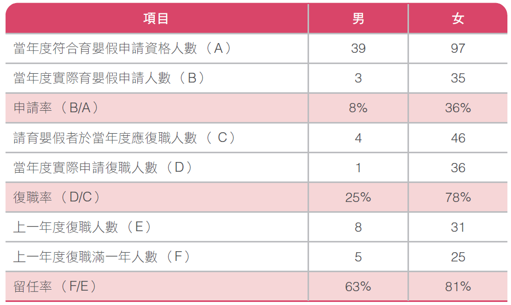 momo配合政府推動育嬰留職停薪制度,讓員工能夠更彈性地運用於育嬰及照護子女,並提供且保障期滿復職員工恢復原職。若員工因家庭照顧需要,提出轉調需求,則主動協助員工復職後轉任至適當職缺,以協助員工能兼顧家庭與工作。