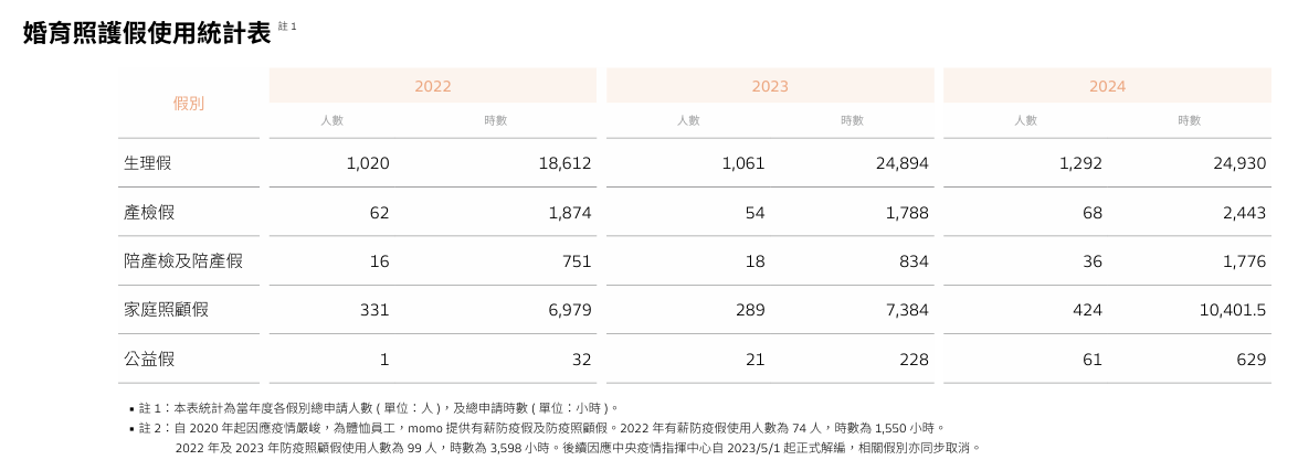 為有效協調勞資關係及促進勞資合作,momo設置勞資會議,每季固定開會,2024年共計召開4次勞資會議。目前勞方代表及資方代表各10位,勞方代表由全體員工直接選舉得出,匯集各主要營運據點之勞方意見,經勞資會議通過之決議適用全體員工,涵蓋範圍佔100% 總員工數。若遭遇重大營運變化且影響擴及員工,momo將預先與員工進行溝通,並遵循勞動基準法規定之預告期,工作三個月以上一年未滿者,於十日前預告之;工作一年以上三年未滿者,於二十日前預告之;而繼續工作三年以上者,於三十日前預告之,以保障員工權益,2024年未發生重大營運變化事件。