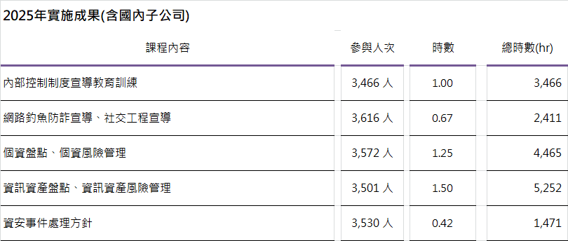 - 不定期辦理內部宣導及教育訓練,強化公司全體人員之風險管理意識。