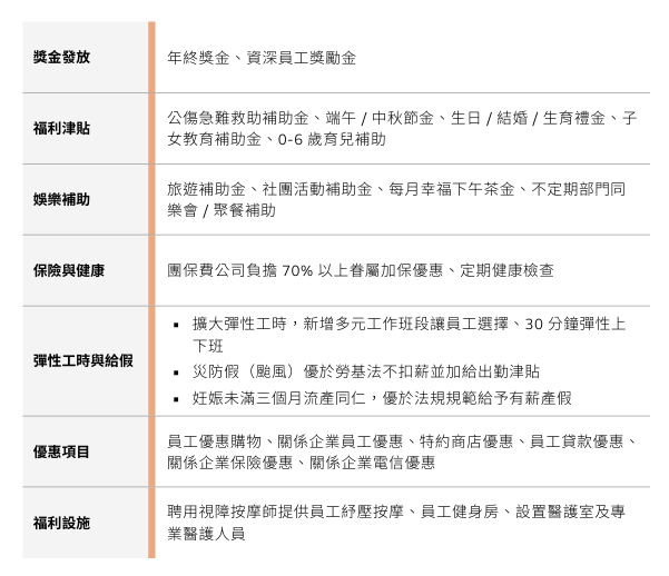 秉持「生活大小事,都是momo的事」,momo落實員工多元化照顧,除設有多項優於法令之工作福利外,另設置職工福利委員會,每月就職工薪津內扣繳0.5%及營業收入內提撥0.1%作為福利金,由委員會統籌運用辦理員工福利相關事宜,負責規劃與執行年度各項福利方案及措施,以謀取員工最佳福利、促進員工身心健康與生活平衡為目標。