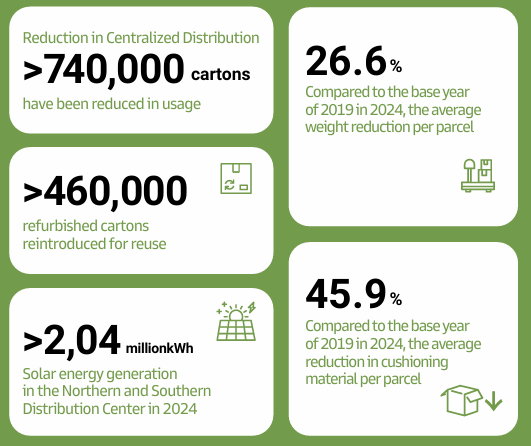 - momo is committed to reducing packaging materials and preventing improper use of packaging. The Company has implemented technology-assisted systems to identify the most suitable packaging, while continuously increasing the adoption of eco-friendly materials and circular package to minimize environmental impacts.