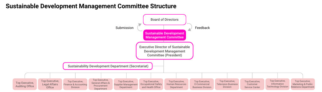 Each business unit, in line with its area of responsibility, formulates relevant management indicators, targets, and action plans with reference to the material sustainability topics identified by stakeholders. These plans are reported semiannually to the CEO (President) of the Sustainable Development Management Committee, who approves and oversees cross-departmental coordination. The Sustainability Development Department further facilitates interdepartmental communication and collaboration, while regularly tracking the achievement rates of short-, medium-, and long-term goals. The top executive of each business unit is responsible for overseeing the achievement of management indicators and targets, with more than 10% of their KPIs linked to ESG performance.