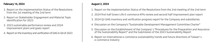 To step up sustainable operation and management, on July 27, 2022, the 7th Board of Directors resolved to elevate the Sustainable Development Management Committee to a functional committee under the Board of Directors. At the first meeting of the 8th Board of Directors held on May 19, 2023, three independent directors and two directors were appointed as members of the 2nd Sustainable Development Management Committee.The members mutually elected Chairman Daniel M. Tsai to serve as convener and meeting chairperson. The Committee shall convene at least twice annually, and the executive director meetings shall be held at least twice annualy as well. Every six months, the effectiveness of sustainable governance strategies and the execution of annual development plans shall be reported to the Board of Directors.