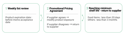 • Expiry Date Management: To prevent consumer harm from expired products, all momo products must comply with the "Expiry Date Management Rules" to ensure that no expired products are purchased by consumers. We also sell expiring or promotional products at a suitable discount and promote the "Commodity Society Donation Program". We hope this will reduce unnecessary waste by ensuring that every product can be purchased and put to good use by our customers.